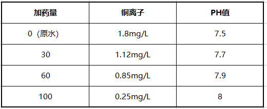 總結:從實驗就能看出來,不需要改變工藝,在二沉池加100ppm就可以解決銅離子濃度控制到0.25mg/L