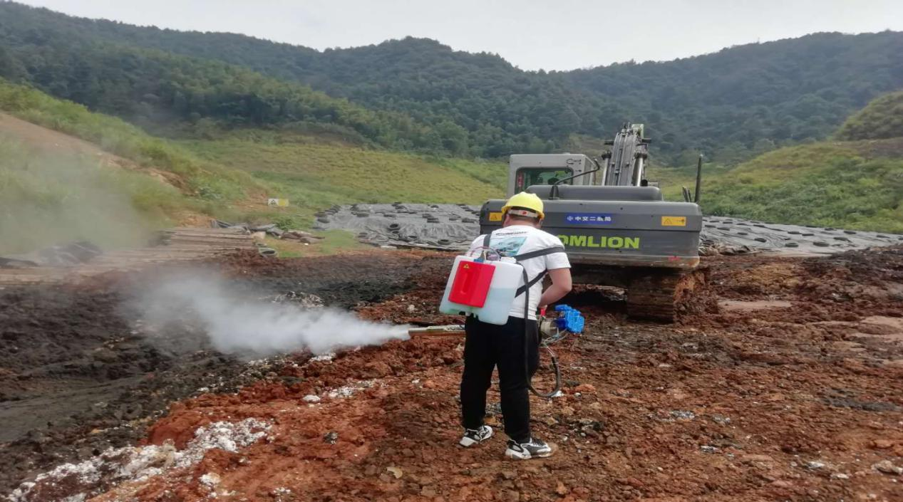 該項(xiàng)目為中石化某水務(wù)部固體廢棄物處理中污泥除臭。經(jīng)現(xiàn)場踏勘及分析考證后得出,該場地臭味主要來源于污泥轉(zhuǎn)運(yùn)中所產(chǎn)生的臭氣以及現(xiàn)場挖掘機(jī)作業(yè)時(shí)來回翻動(dòng)污泥產(chǎn)生的臭氣,經(jīng)風(fēng)向的流動(dòng),導(dǎo)致臭氣在廠區(qū)內(nèi)肆意揮發(fā)。該臭味中主要含有硫化氫、氨氣、甲硫醇等。長期吸入對(duì)人體可產(chǎn)生一定的危害。凡清植物型除臭劑經(jīng)國家權(quán)威機(jī)構(gòu)檢測認(rèn)證,對(duì)硫化氫去除率95.3%,氨氣去除率93.5%,甲硫醇去除率90.2%;對(duì)人體無毒無害無刺激,吸入性以及眼部無害檢測認(rèn)證。(檢測報(bào)告見附件)因?yàn)楝F(xiàn)場是不停的作業(yè),所以廠方建議現(xiàn)場采用大型高壓霧炮裝置,采用間隔式噴灑。例如一分鐘噴灑10次,一次噴灑3秒。這樣可以最大化的處理該臭氣。車輛在運(yùn)輸污泥到廠后,也可以搭配選用卸貨時(shí)噴灑。建議大壩位置可防止一臺(tái)高壓霧炮裝置,橫向噴灑,可最大化阻斷臭氣外泄其他區(qū)域。可選擇一天8小時(shí)、16小時(shí)、24小時(shí)噴灑方式,植物除臭劑建議稀釋比例在20-200倍之間。(根據(jù)現(xiàn)場臭氣濃度判定)