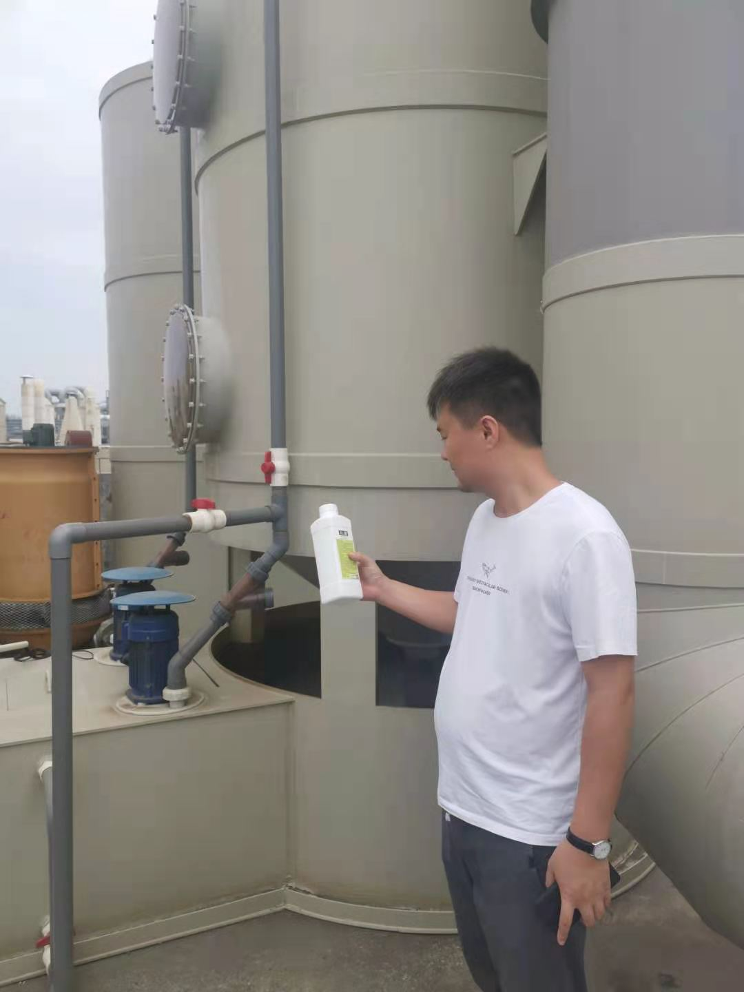 1.生物噴淋塔除臭: 首次每噸噴淋塔循環水加50公斤除臭劑,以后每噸循環水一月補加25公斤,水循環一個季度更換一次。